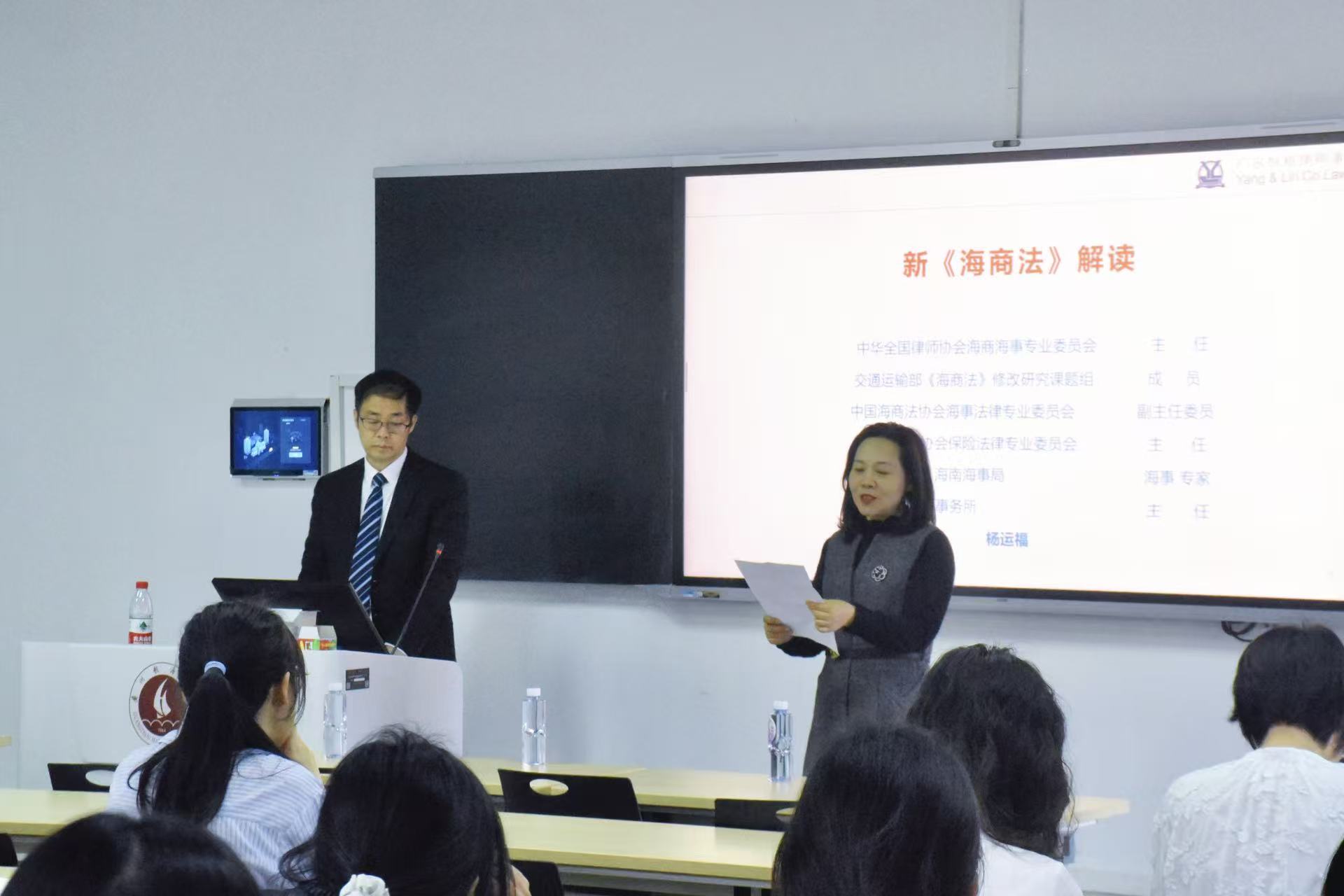 2025年12月18日,海事法律与交通管理学院在B11教学楼健兵南108教室举办《<海商法>修订主要内容介绍》专题讲座,邀请广东恒福律师事务所主任杨运福为法学专业的学生解读新修订的《海商法》。讲座由管理学院副院长张敏主持,吸引了100余名师生到场参加。
